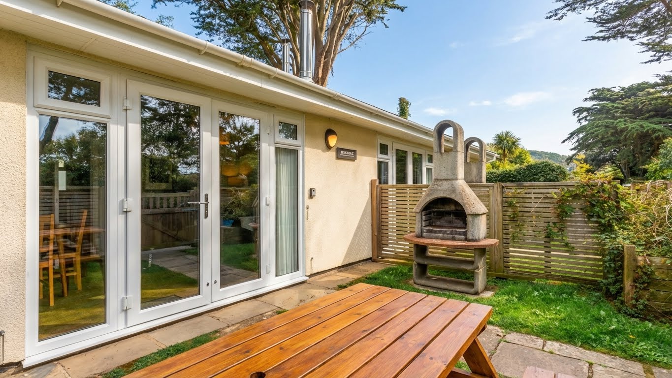 This cottage makes the perfect accommodation for families or groups of four, with two bedrooms. The comfortable master bedroom has a double bed and a television and is decorated with stylish furnishings and flooring. The good sized second bedroom has twin beds. The modern family bathroom has a shower over the bath. The open plan living arrangement has a modern kitchen area with oven, grill, hob, microwave and fridge freezer, a dining table and relaxing seating log burner. There is a flat screen television. Outside the cottage there is a seating area, ideal for al fresco dining. Our restaurant is dog-friendly, so no need for your dearest family member to miss out. A favourite new addition is our colourful dog showers which are fab after a day on the beach or a muddy walk. Mawgan Porth beach is just a stone’s throw away from The Park and welcomes dogs all year round.