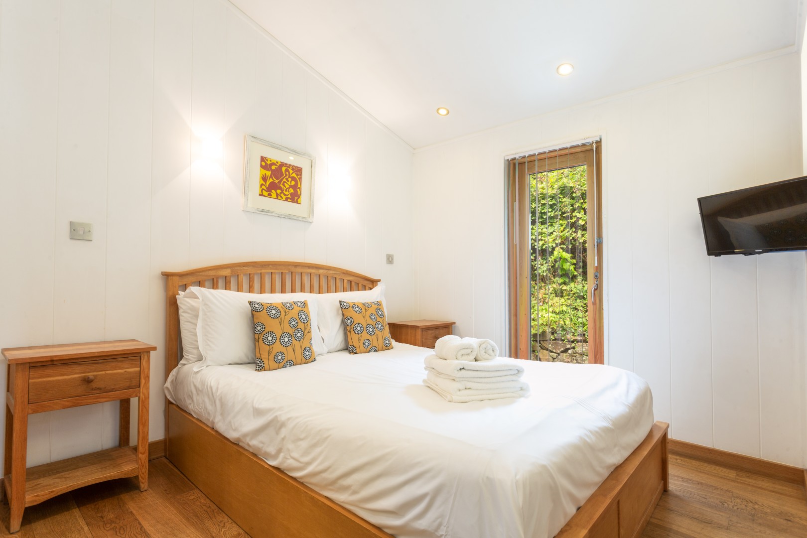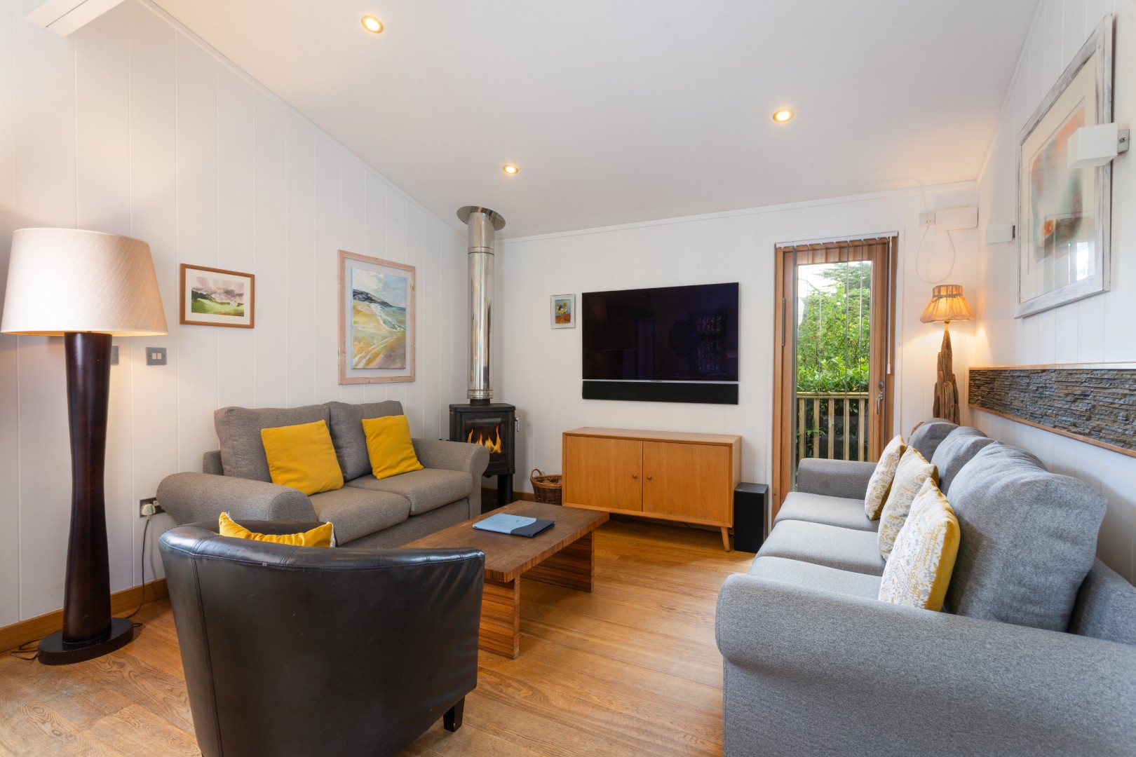 Stretch out and take it easy, Karrek is one of our spacious holiday lodges, ideal for large families or groups, comfortably accommodating up to six people. Under-floor heating, log burner and cosy bedrooms. This unit can accommodate up to 2 cots for infants under 3 years of age. Karrek is now dog-friendly, so no need to leave your beloved pets at home! Our restaurant is dog-friendly, so no need for your dearest family member to miss out. A favourite addition is our colourful dog showers which are fab after a day on the beach or a muddy walk. Mawgan Porth beach is just a stone’s throw away from The Park and welcomes dogs all year round. Private hot tub!