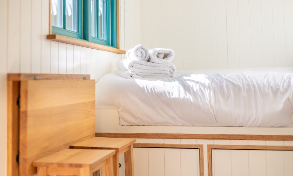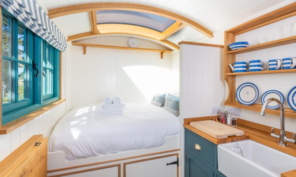 Zennor is meticulously crafted by skilled local Cornish artisans Pumphrey and Weston, showcasing sustainable, locally sourced materials that blend elegance with practicality. Discover thoughtfully designed interiors that maximize space with custom cabinetry, ensuring a stylish yet functional stay. As night falls, enjoy the unique glass ceiling above your bed, perfect for stargazing from the comfort of your cozy sanctuary.